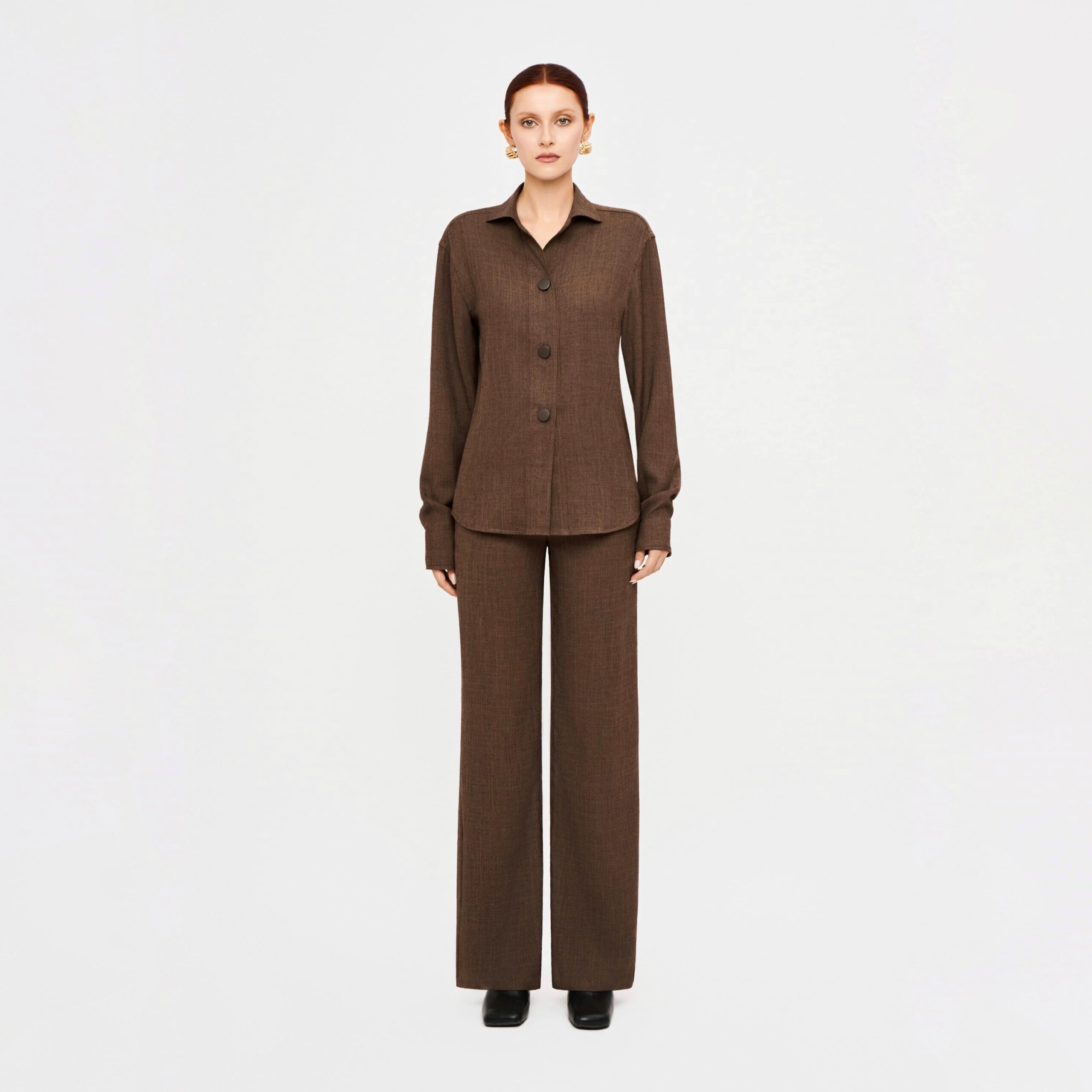 Áo sơ mi namu nâu đậm mang đậm dấu ấn của tinh thần thoải mái bởi sự kết hợp của chất liệu namu nhẹ nhàng và phom áo oversize, rộng rãi. Mẫu áo sơ mi namu nâu có thể dễ dàng tạo nên một outfit thanh lịch khi phối cùng chân váy/ quần suông cùng chất liệu hoặc sẽ trở nên đầy cá tính khi được mix match cùng các chân váy maxi có chất vải mộc mạc tone màu be trắng, điểm xuyết những phụ kiện như thắt lưng bản tròn nhỏ.