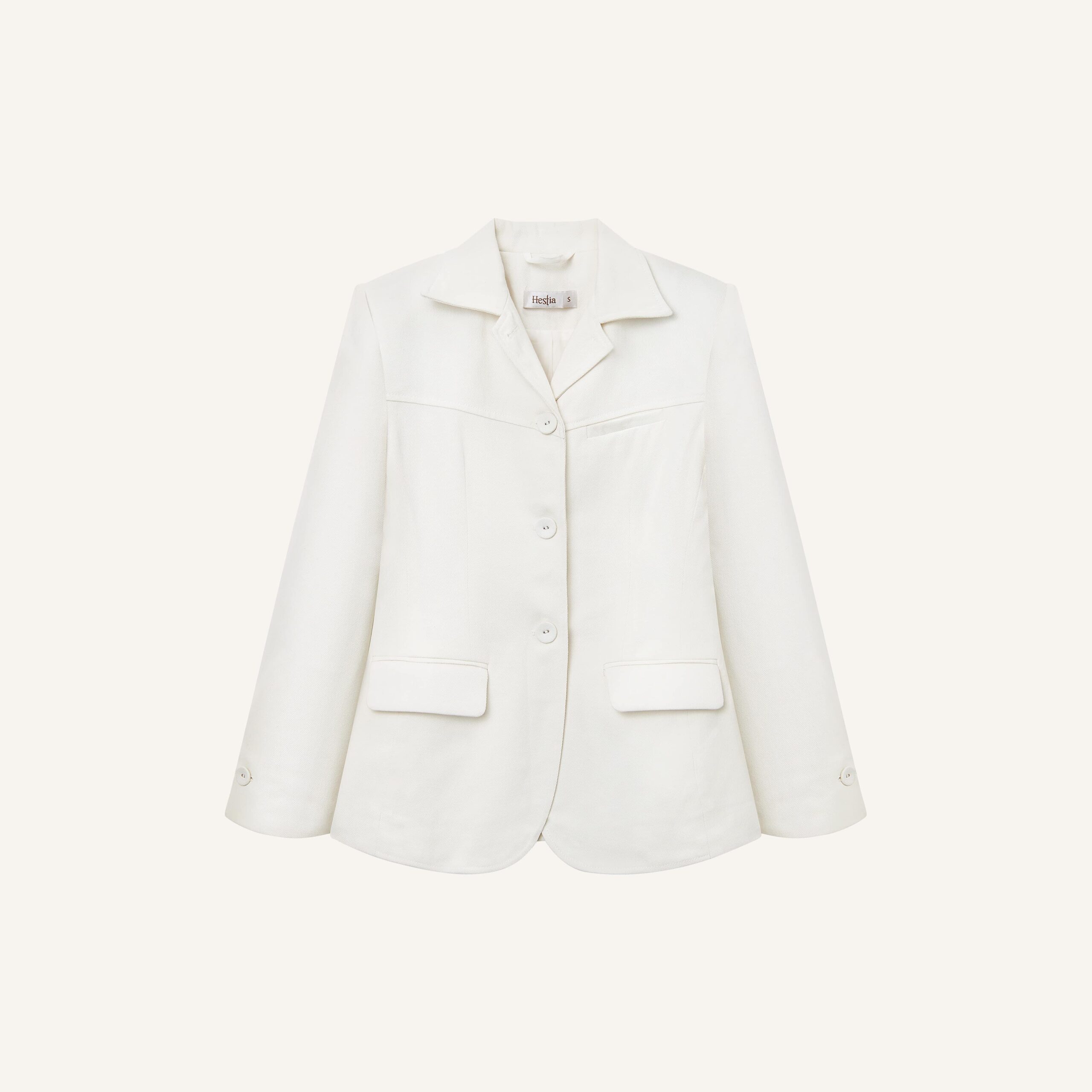Áo vest khaki dứa trắng được dệt từ thành phần xơ dứa và hạt từ nhựa tái chế mang vẻ đẹp của tự nhiên cùng trí tuệ con người. Áo được may có lớp lót với thành phần 100% cotton, với độ ôm vừa phải tạo cảm giác thoải mái khi mặc hằng ngày. Thiết kế có thể sử dụng như một chiếc suit jacket hoặc chỉ mặc khoác ngoài tạo sự đa dạng trong phong cách hằng ngày.