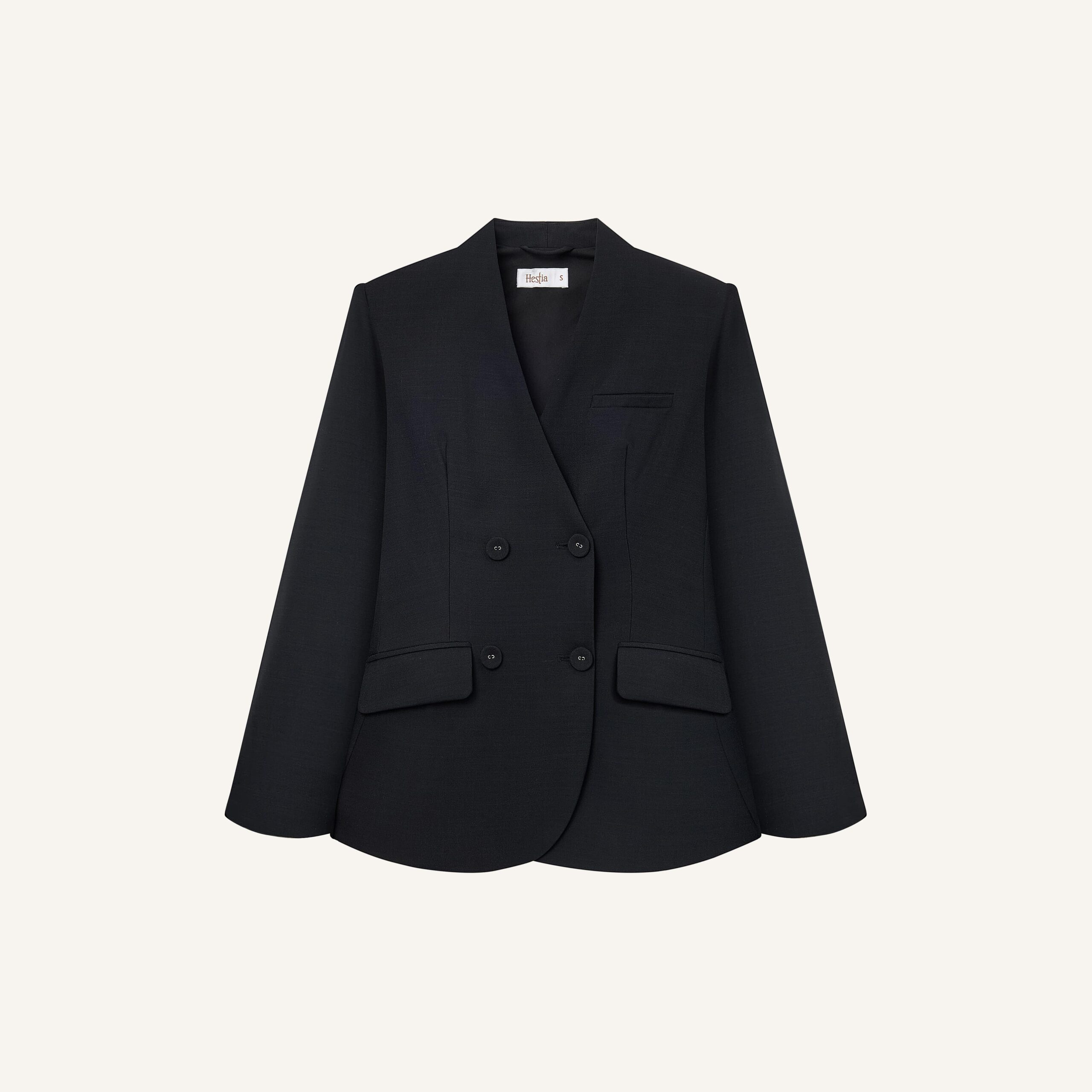 ÁO VEST NANO ĐEN KHÔNG CỔ HAI HÀNG KHUY