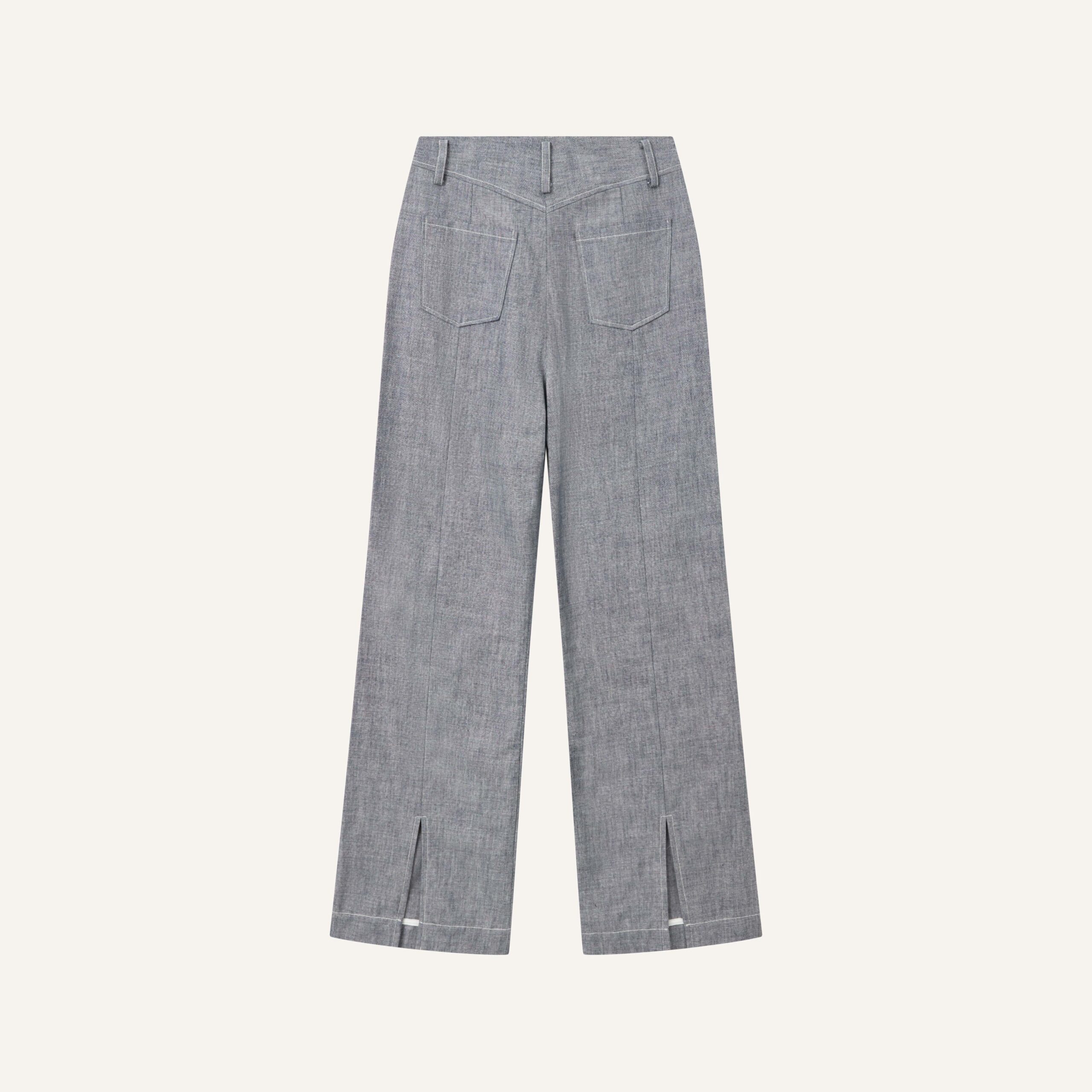 QUẦN DENIM CHUỐI XÁM XẺ SAU