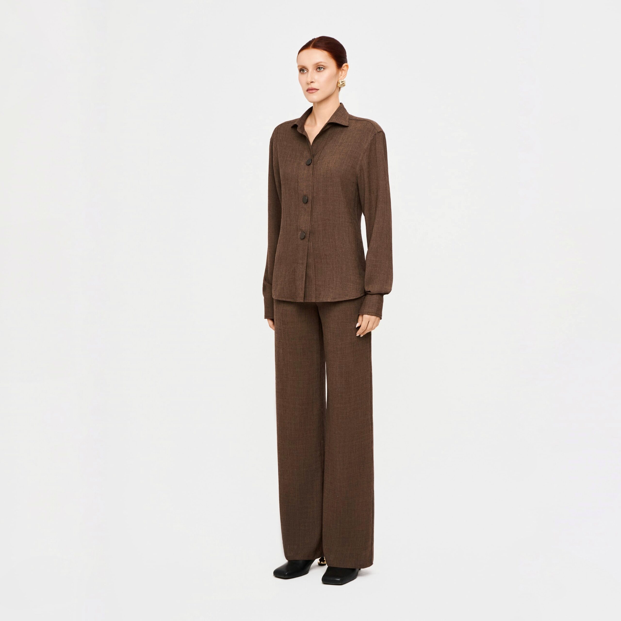 Sản phẩm có thể kết hợp cùng áo vest namu nâu hoặc sơ mi namu nâu tạo nên tổng thể tone-sur-tone hoặc khi phối cùng các mẫu áo sơmi có chất liệu tự nhiên như linen vẫn mang đến một dáng vẻ thanh lịch, nhẹ nhàng và đầy phóng khoáng.